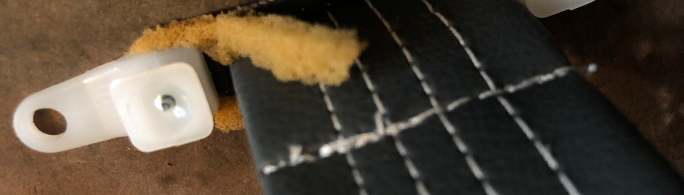 The later models of the car has a dedicated slot for the door pull strap, as opposed to have them looped through the door handle like the earlier models. Surrounding the slot there is a plastic guard which is held in place by two small screws. On the backside of the door panels these screws mount into two tiny metal clips, that are often lost. They also have a tendency to fall off if you unmount the guard and then you have to remove the door panel(s) to get them out. Out of my 4, one was missing, and I found a very good alternative to use; a nylon curtain hook! This was something I had just lying around, but it does the job nicely. It is dirt cheap and readily available and actually does a better job in holding the guard attached to the panel.