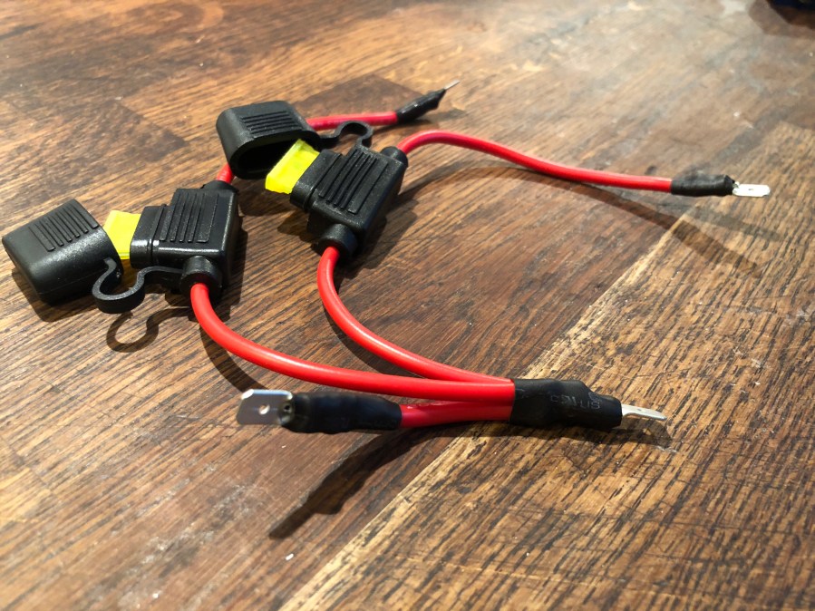 This is the original blue Pektron Fan Fail unit which was still in my car when I purchased it on nov 2017. According to every advice i have read, it needs to be replaced by a fused jumper wire.The back side of the Fan Fail unit. To replace this one, you need to fabricate a jumper wire, preferably fused, according to instructions.This is my finnisehed fused jumper wire. It is made out of two inline fuses from eBay, with 20 amp yellow fuses. On one end of each wire, I tinned the wire with solder, and crimped a blue spade connector on it. The other two ends I soldered together with an additional piece of wire so that 3 wires go together in one spade connecter. You probably have to strip some of the strains of each wire to make them fit the connector. Finally, on the other end of the third wire I added another blue spade connector. According to the description in the link above you insert the end with the 3 wires where to power enters the relay socket (B in the diagram above, the connection closest to the passenger seat), and attach each end of the legs to the left and right fan (A and C above). The final wire goes from B in the diagram above to the middle connection, to make the fan fail light come on overtime the fans are running. You can then just cover the “fail” part in the instrument cluster.My finished fused jumper wire from another angle.